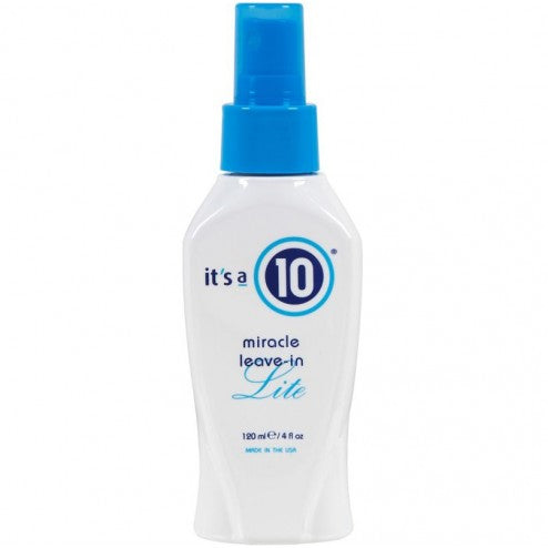 IT'S A 10 ミラクル リーブイン ライト (4 オンス) は、オリジナルのリーブインコンディショナーの軽量版で、細くて薄い髪のために特別に開発されました。素早く浸透するこのスプレーは、もつれをほどく、熱から髪を守る、縮れ毛を抑える、枝毛を補修する、髪を強くする、ツヤを与えるなど、10の重要な効果を、重さや髪の蓄積なしに提供します。シルクプロテインと植物エキスを豊富に配合し、なめらかで手触りがよく、まとまりやすい髪に仕上げます。4 オンスサイズは、ご自宅でも外出先でもスタイリングに最適で、便利なボトルでサロンクオリティの仕上がりを実現します。