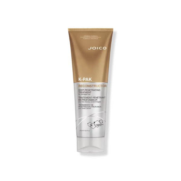 Joico K-PAK Reconstructor (8.5 oz) is a powerful deep-repair treatment that helps restore severely damaged hair with instant strength and resilience. Featuring a high concentration of Keratin, it targets and repairs protein loss, while Guava Fruit Extract—rich in antioxidants and Lycopene—helps shield hair from UV damage. Evening Primrose Oil delivers Omega-6 and essential fatty acids to deeply nourish and revitalize brittle strands. Powered by Joico’s SmartRelease Technology, this award-winning formula continuously releases hair-healing ingredients for stronger, healthier-looking results after just one use.